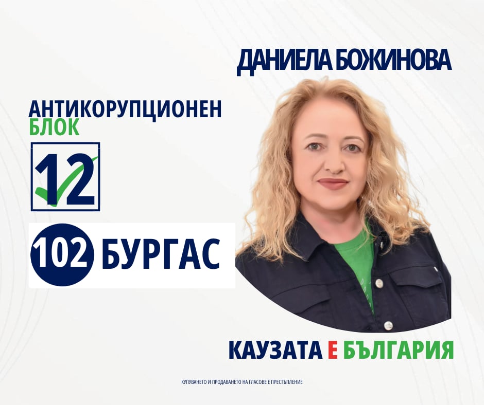 Авторката е съпредседател на ПП “Зелено движение” и кандидат за народен представител от коалиция Антикорупционен блок#12с преференция 102 в Бургас.