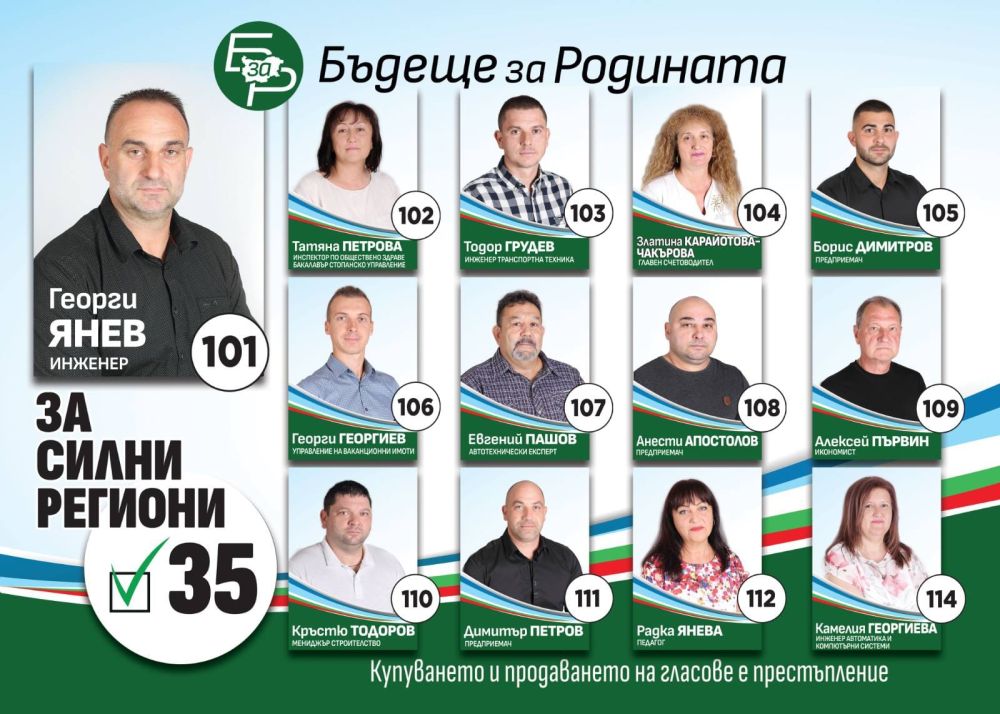 Кандидат е за общински съветник от листата на „Бъдеще за Родината“ с номер 35 в бюлетината и преференциален номер 107