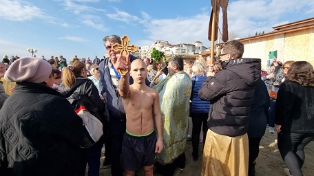 19-годишният Христо Станчев извади Светия кръст от морето край Свети Влас по време на ритуала за Богоявление. Младежът е родом от София, но от началото на миналото лято живее в крайморския град.