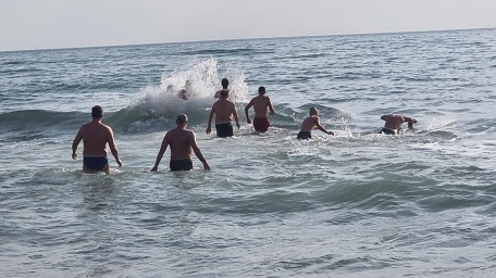 Десетки жители и гости се събраха на плажа, за да наблюдават ритуала. Смелчаците, които се хвърлиха в морето за кръста, бяха благословени от отец Димитър.