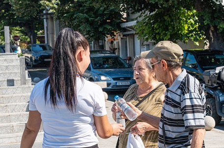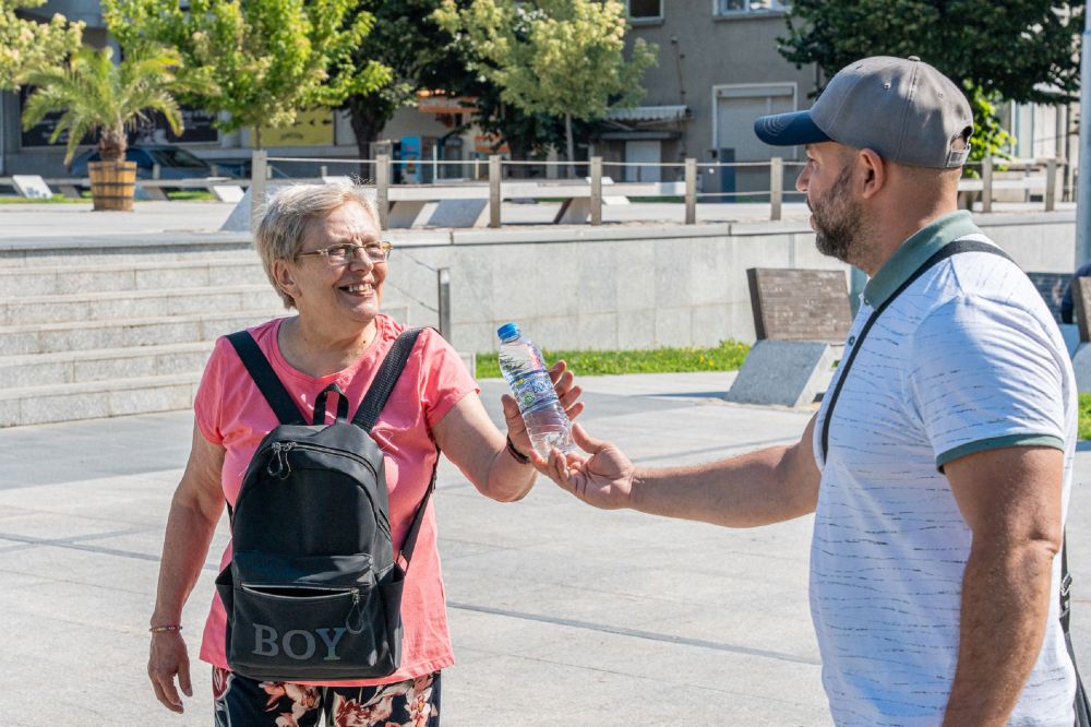 На площада в Царево служителите раздадоха бутилки с вода, като напомниха на гражданите за необходимостта от редовна хидратация и предпазване от слънцето.