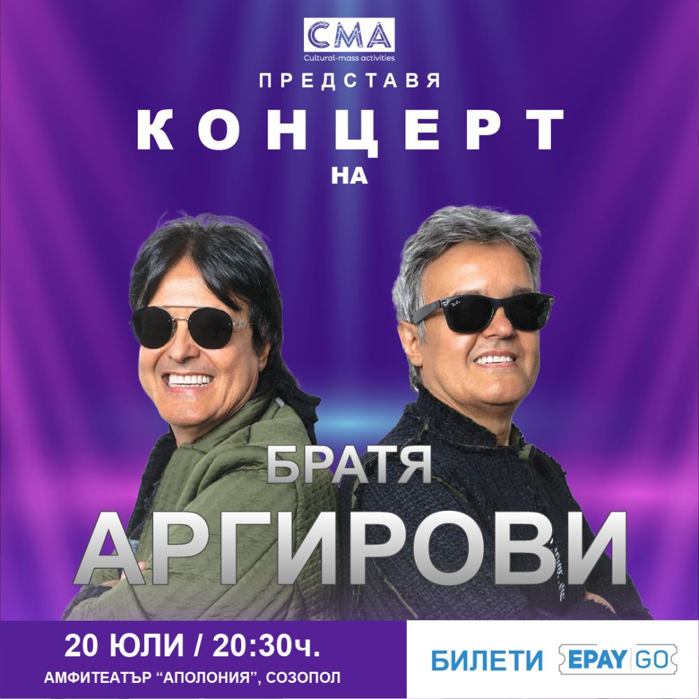Концертната серия започва на 20 юли с Братя Аргирови – едни от най-популярните гласове от края на XX век, чиято музика продължава да събира поколения. Публиката ще чуе песни като „До вчера“, „И замириса на море“ и „Предчувствие за стих“ – с характерната мелодичност и носталгично звучене, което ги превърна в емблеми на времето си.