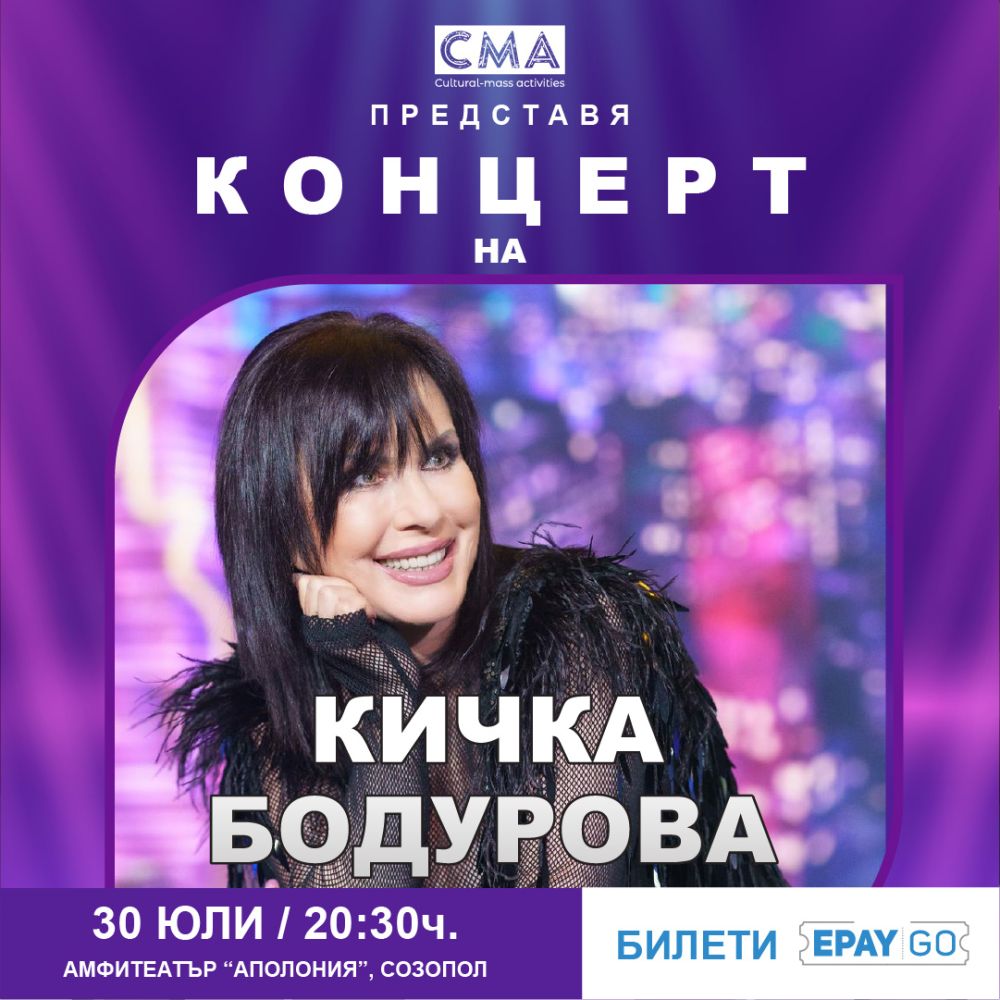 На 30 юли следва концерт на Кичка Бодурова – певицата, чийто глас се свързва с любов, пътешествия и онези големи български балади, които не губят емоционалното си звучене. След дълги години в чужбина и периодични завръщания на българската сцена, Бодурова отново избира Созопол за своя летен концертен дом.