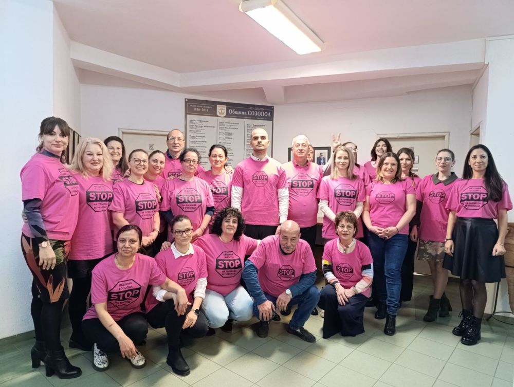 Всички служители на община Созопол потвърдиха ангажираността си към проблема като днес също облякоха розовата фланелка с грижа към децата.