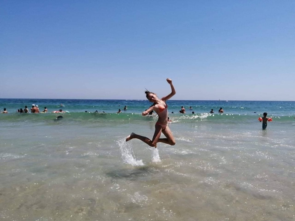 4. Таня Гочева е запечатала весел момент на плажа, скачайки над морските вълни:
