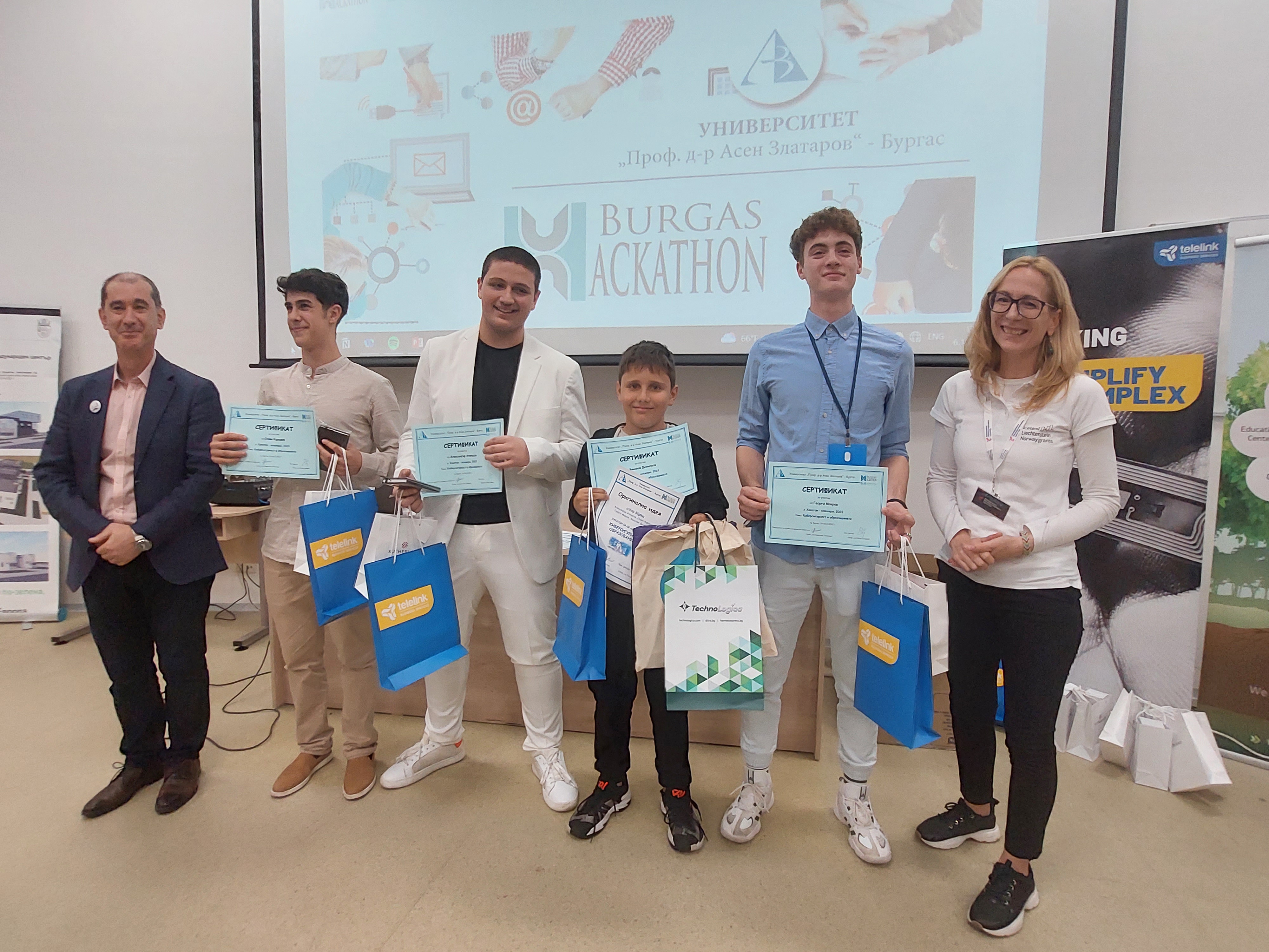 С безплатно приложение, което защитава профилите на учениците и със сигнал за смяна на парола отбор Inkblot Studioот Професионалната гимназия по компютърно програмиране и иновацииспечели първото място в поредното издание на хакатона на Университет “Проф. д-р Асен Златаров”.