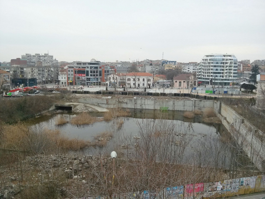 Сагата с „язвата” в топ центъра на Бургас започва през далечната 1989 г., когато теренът е отреден за "Универмаг, базар и комплексно обществено обслужване". От тогава започват и съдебните дела по отношение на продажбата на право на строеж във връзка с ликвидацията на бившето дружество с общинско участие „НАР МАГ” ООД. През 2003 г. ликвидаторът на „НАР МАГ” ООД продава правото на строеж върху терена на частното дружество „ГИР 2” ЕООД, към настоящия момент „Мариета” ЕООД. През 2008 г. Община Бургас предявява самостоятелни претенции върху собствеността на терена, вследствие на което към настоящия момент е собственик на близо 11 дка. Останалите 638 кв. м. са собственост на четири търговски дружества. Обявените от тях инвестиционни интереси включват изграждането на голям търговски център. Община Бургас счита, че това не отговаря на обществените нужди и че целият терен трябва да бъде отреден за голям градски площад с озеленяване, кътове за отдих и пространства за култура.