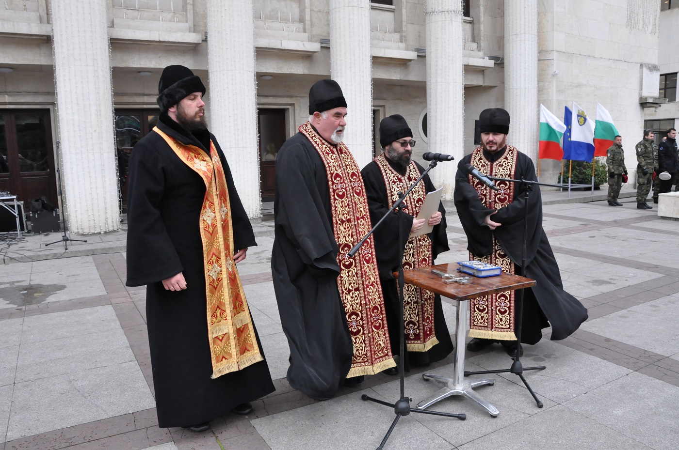 Официалните чествания започнаха от 11.00 часа на площад "Атанас Сиреков" с ритуал по издигане на националния флаг на Република България, флаговете на Европейския съюз, Общината и благодарствен молебен за благоденствието на свободен Бургас, отслужен от бургаското духовенство.