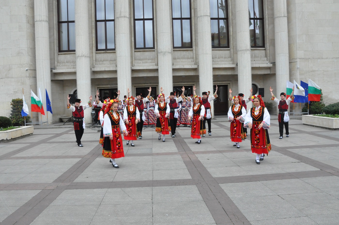 На площад "Атанас Сиреков" танцьорите и музикантите от професионален ансамбъл "Странджа" с художествен ръководител Марио Егов поздравиха жителите и гостите на морския град с празничен фолклорен концерт.