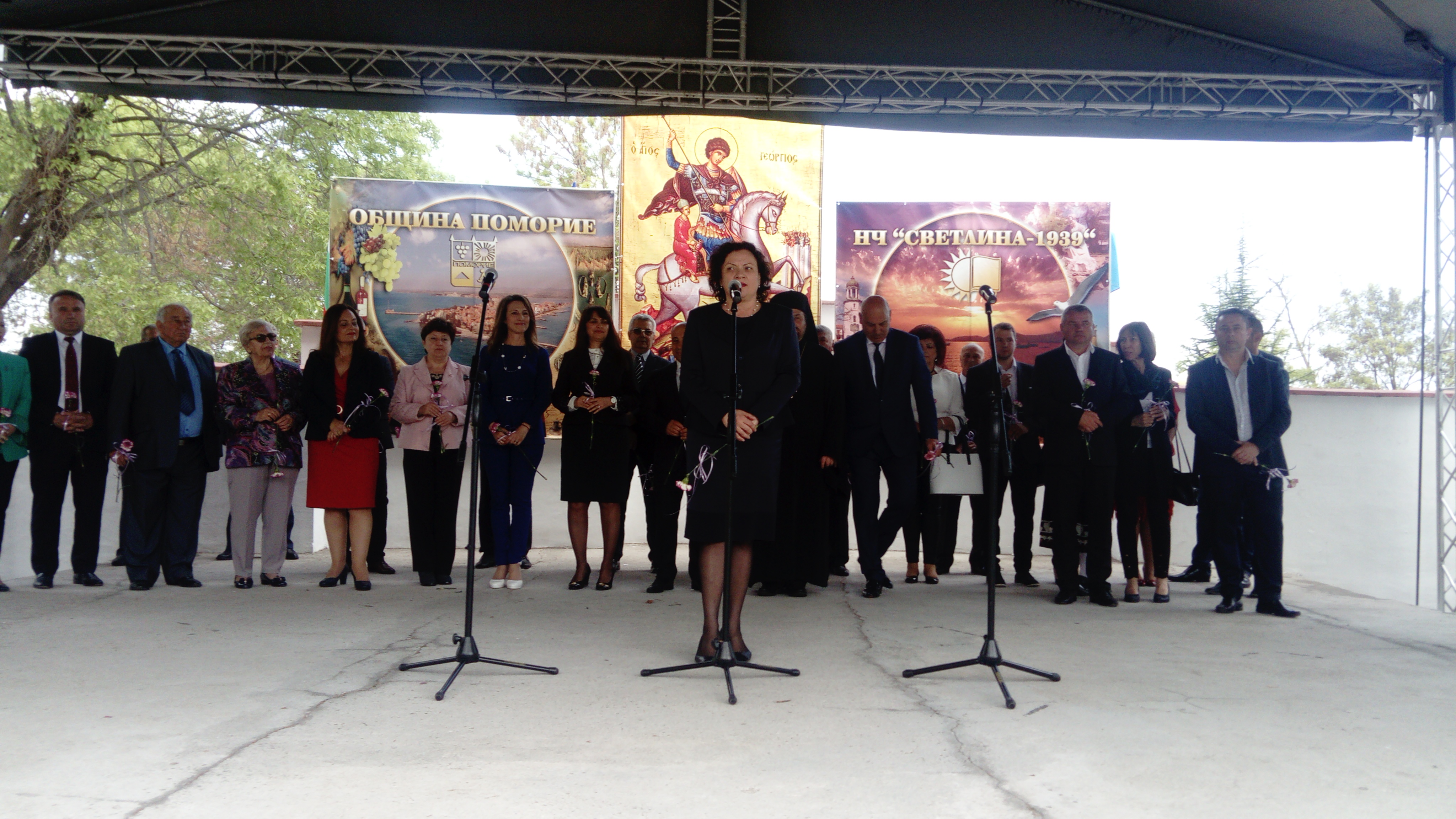 „На този прекрасен ден, вашият страхотен град празнува. Да са честити и всички именници. Поморие е прекрасен град, развива се и става все по-привлекателен за гостите, все по-уютен за жителите му. Ние се гордеем с Поморие, с неговата богата история и традиции, които вие съхранявате и предавате на деца и внуци, но най-голямото богатство на Поморие, са хората. Бъдете здрави, честити и да ви закрия Свети Георги Победоносец”,приветства поморийци Ивелина Василева.