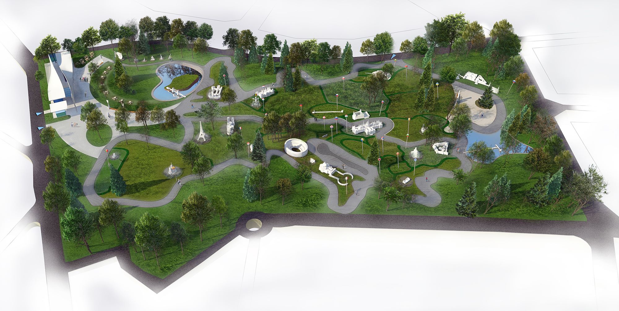 Предвижда се в новия парк да се аранжират миниатюри и скулптури на подбрани културни и исторически забележителности от държавите на континента Европа. Ситуирането, оформянето на релефа и благоустрояването са подчинени на условието да се пресъздаде в максимална близост оригиналната среда на обектите.