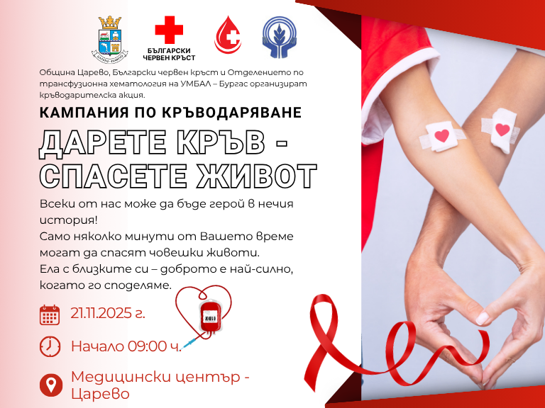 Ако и вие желаете да станете кръводарител, можете да го направите всеки делничен ден в Отделението по трансфузионна хематология на УМБАЛ Бургас, от 7.30 до 14 ч. Кръводарител може да бъде всеки здрав човек на възраст от 18 до 65 г.