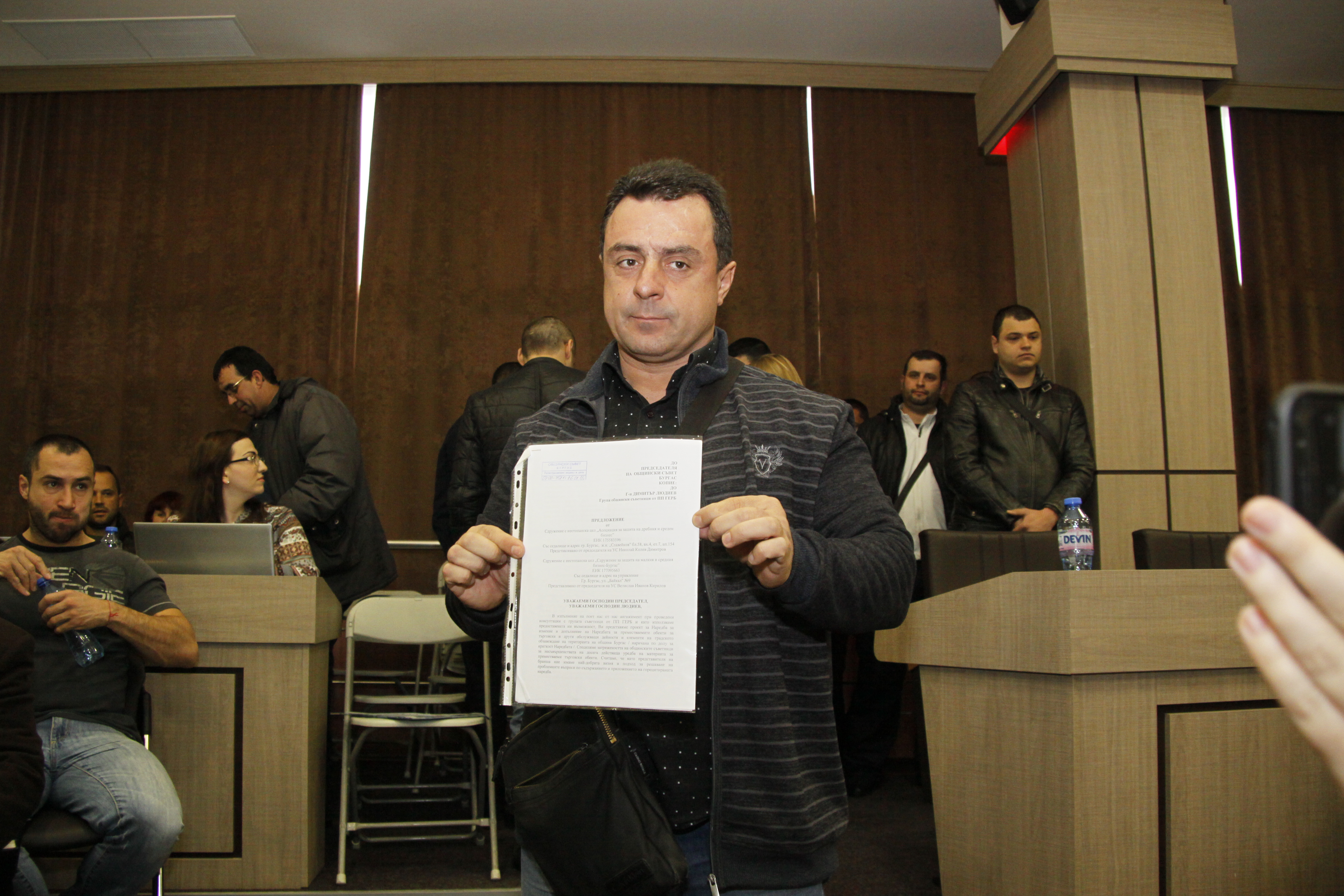Кметът Димитър Николов също взе отношение по темата. „Дребните и средни търговци трябва да усещат сигурност и да знаят, че никой няма да промени точките, където са обектите им. До скоро заместник-кметът по „Бюджет и финанси“ бе натоварен с техните въпроси, но при мен идваха съветници, които се оплакваха, че сегашната наредба създава трудности. Затова аз се съгласих да се изготви нова, която да гарантира прозрачност. Не мога да се обявя против решението на общинските съветници, които са избрани от бургазлии, но ги призовавам да гласуват по съвест”, заяви Николов, а думите му бяха приети с овации в залата.