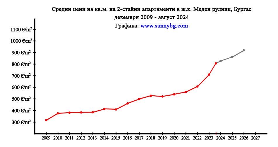 Прогнозна цена за декември 2024: около 825 евро/кв.м.