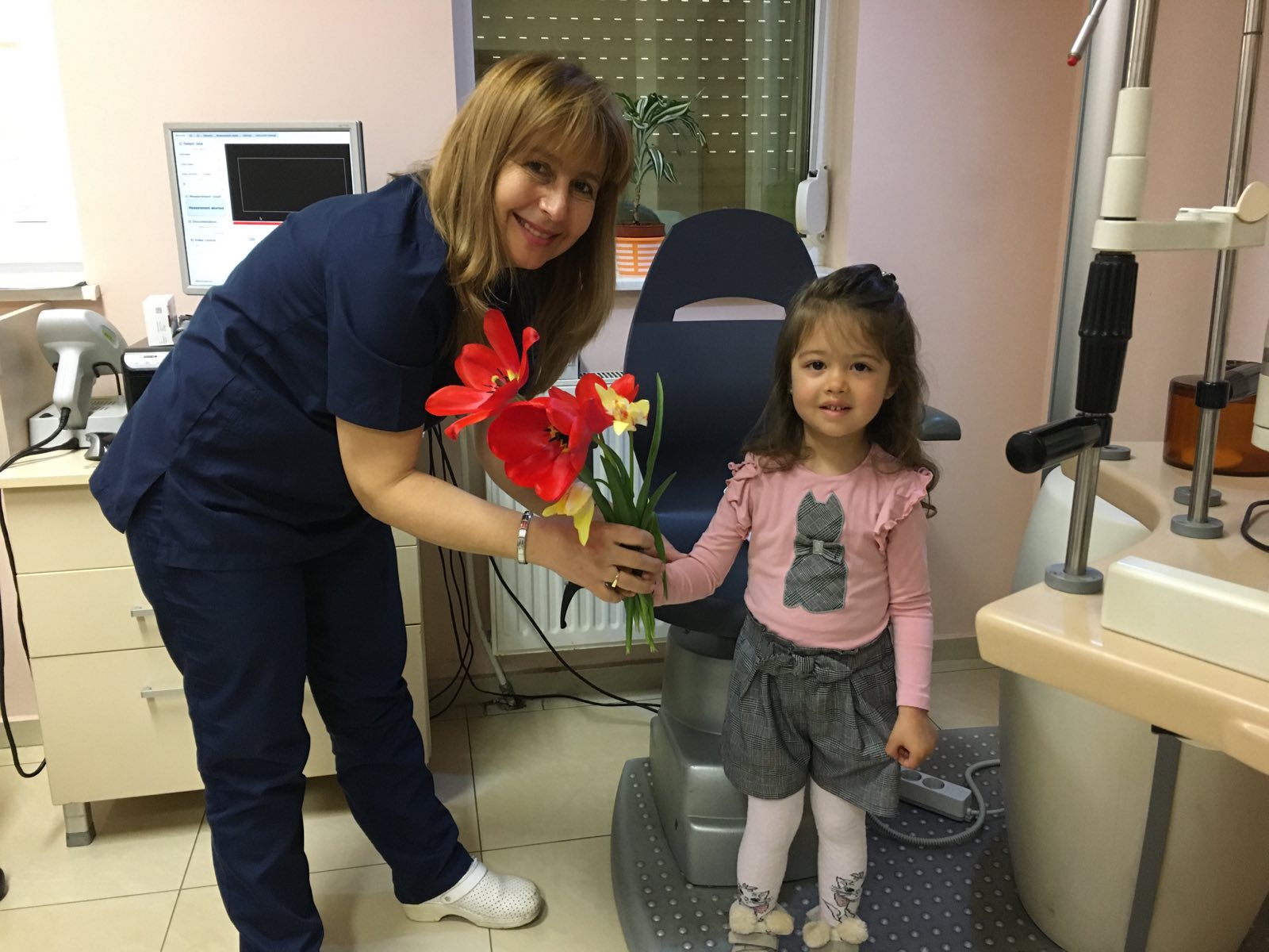 Поради тази причина в бебешка възраст не можем да говорим за изследване на зрителна острота. Незаменим „помощник“ в тази насока е високотехнологичният детски авторефрактометър, с който клиниката разполага, и благодарение на който ние, детските офталмолози, измерваме с голяма точност рефракцията на детето, т.е. има ли късогледство, далекогледство, астигматизъм и се ориентираме за бъдеща нужда от очила.