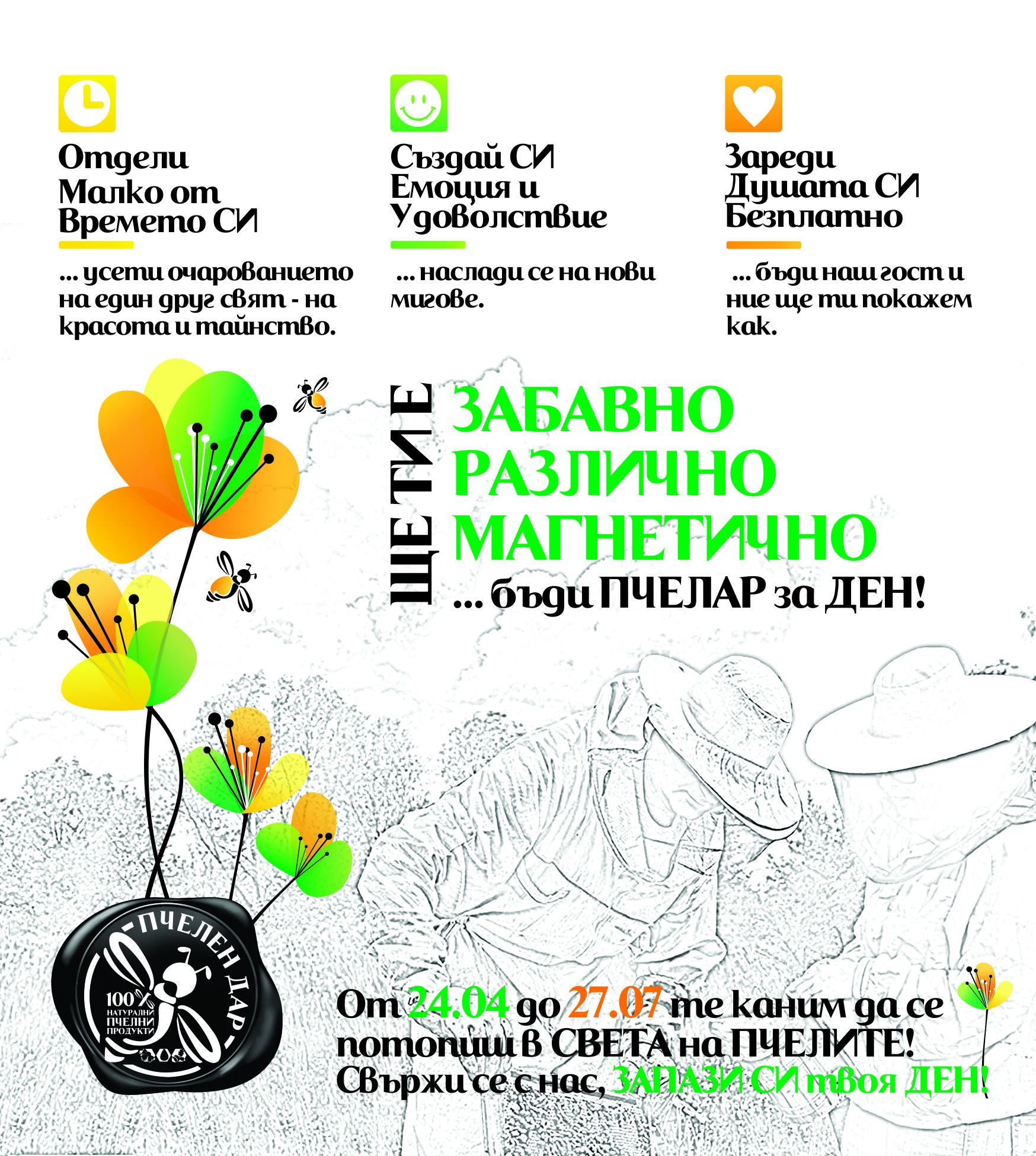 Достави си едно ново преживяване, бъди ПЧЕЛАР за ДЕН!За повече информация позвънете на 0882 509 402