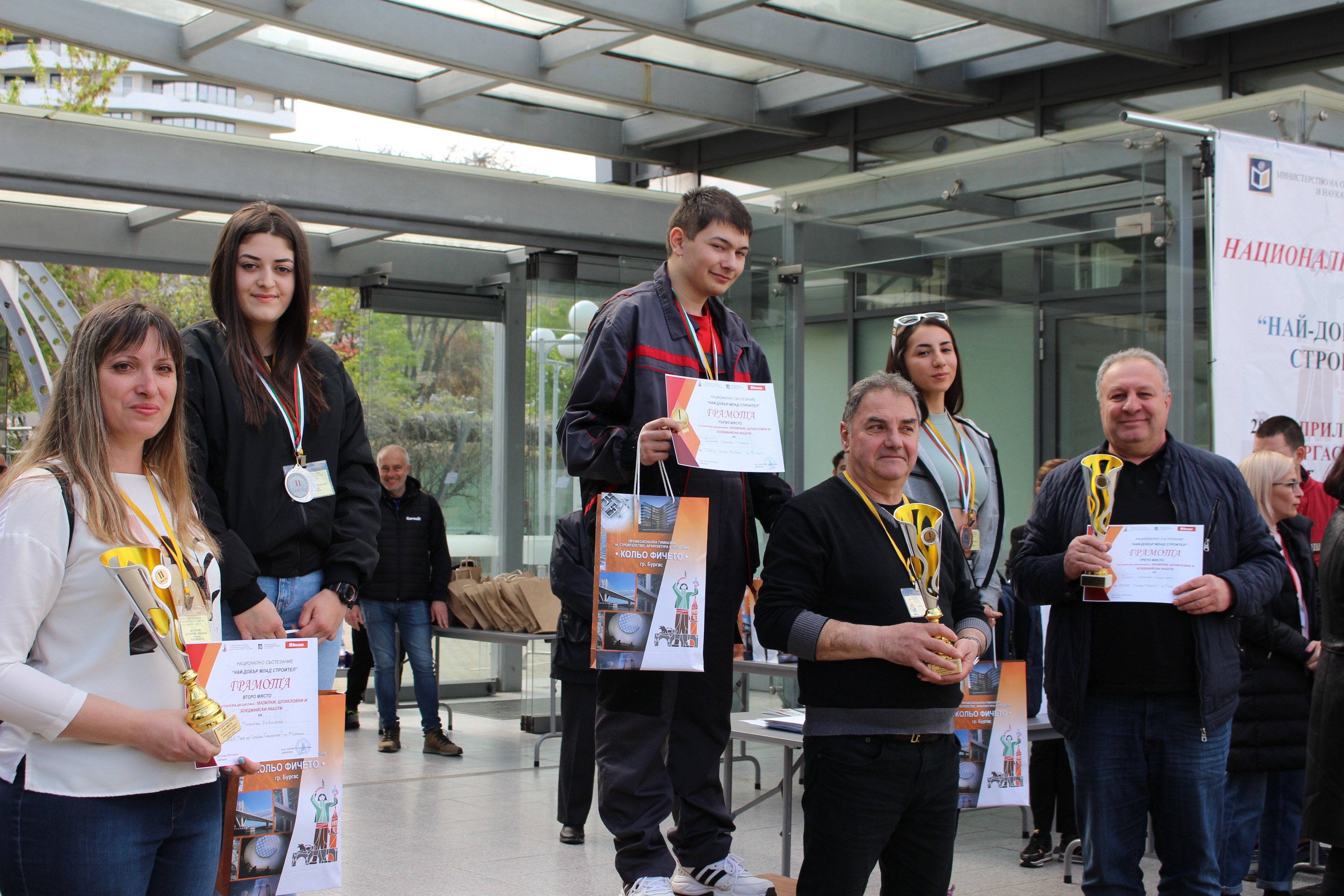 За четвърта поредна година ПГСАГ "Кольо Фичето" - Бургас стана първенец в дисциплината "Облицовки и настилки" с Мерт Мустафов от 12е. В предишните три години първото място бе отново за наш ученик - Хюсеин Хасан. Днес той присъства на състезанието вече като студент във Висшето строително училище. Гимназията завоюва и второ място в категорията "Геодезия".