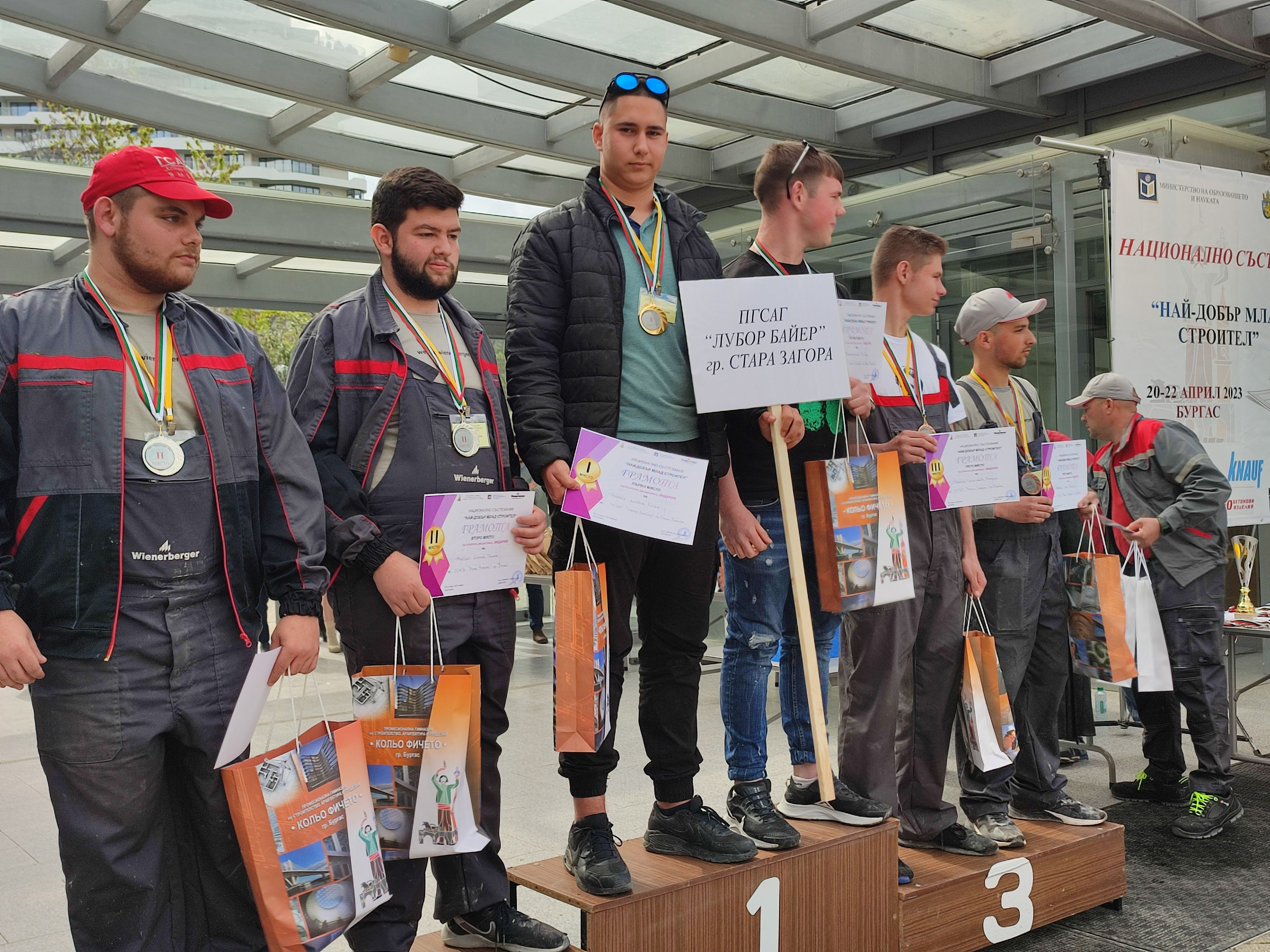 Най-добрите млади строители от цялата страна премериха сили в Националния кръг на състезанието "Най-добър млад строител", организирано от МОН. То се проведе в Бургас и приключи днес. Участваха 17 отбора от професионални строителни гимназии, излъчени като първенци на регионалните кръгове. Днес станаха ясни победителите в петте дисциплини, които си тръгнаха освен с морално удовлетворение, с много предметни награди от спонсорите. Двете висши училища, които подкрепят провеждането на състезанието - Технически университет - Варна и Висше строително училище "Любен Каравелов" - София, обявиха, че приемат първенците без приемен изпит. Във ВСУ "Любен Каравелов" през първата година те са освободени от такса, а ако запазят успех над 5.50, обучението им ще бъде безплатно и занапред.