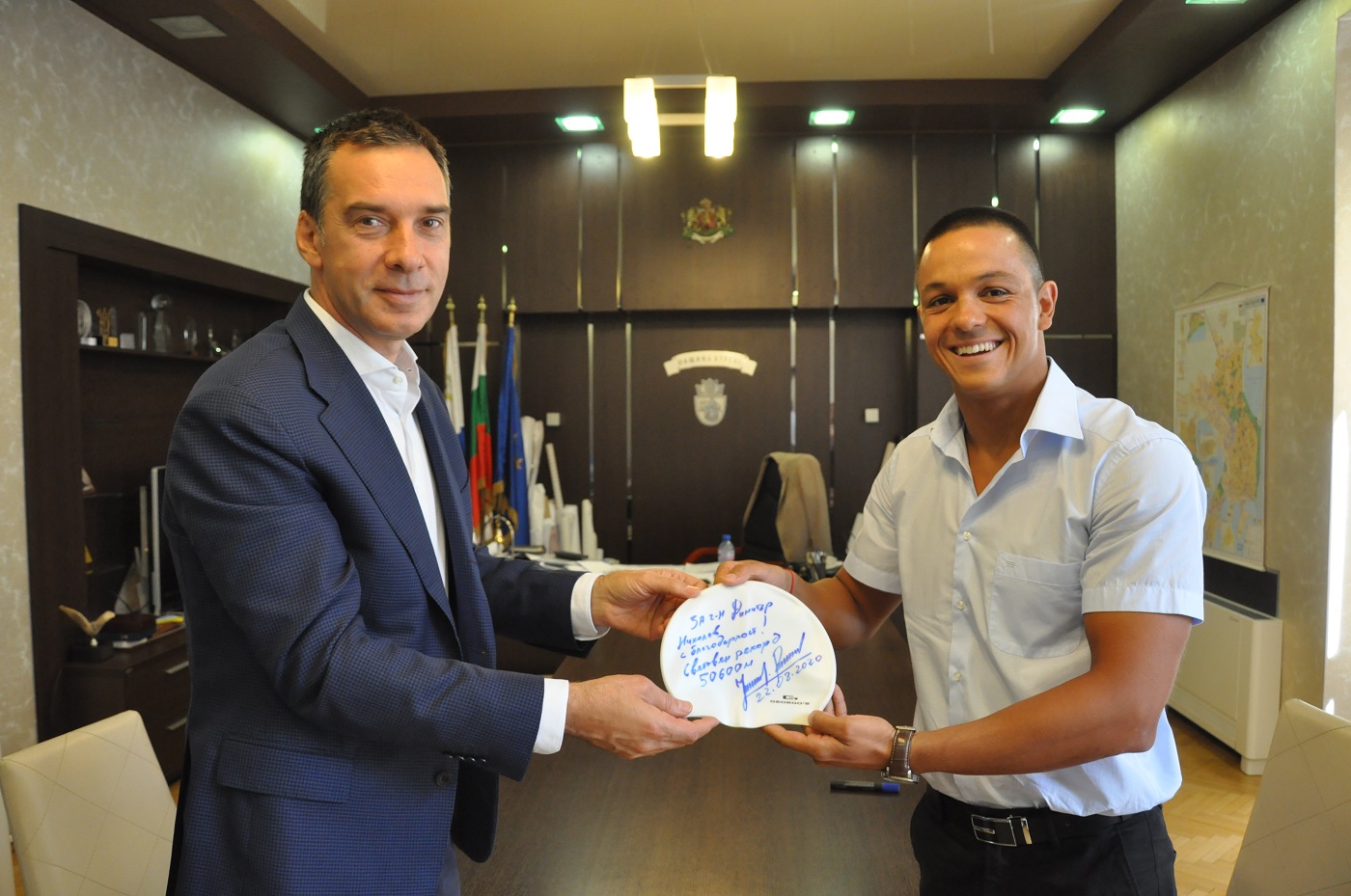 Световният рекордьор по 12-часово плуване в 50-метров басейн получи Златна карта за неограничен достъп до всички басейни от кмета Димитър Николов