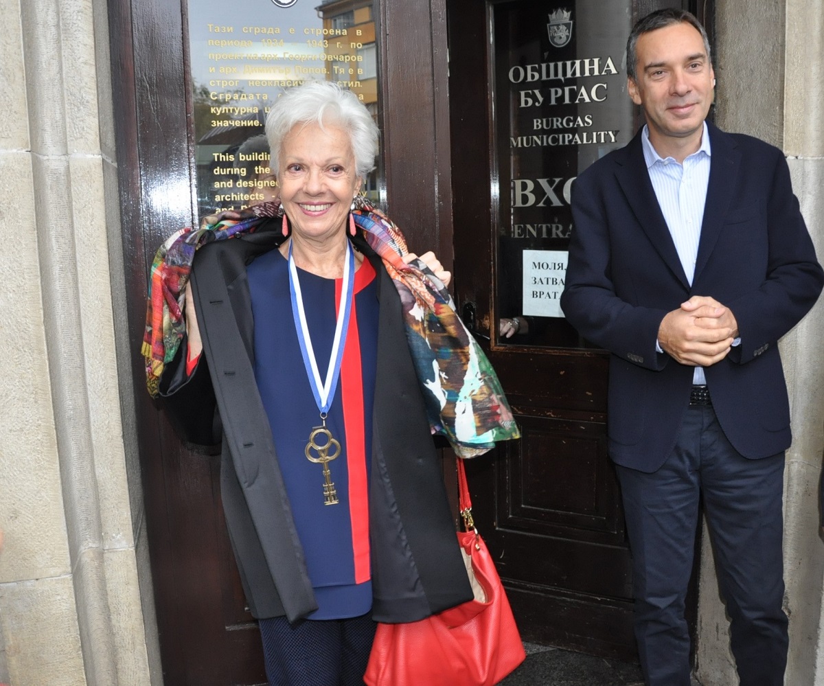 "Радвам се, че именно на Международния ден на музиката - 1-ви октомври, посрещаме голямата оперна прима Райна Кабаиванска. Спомням си предната ни среща. Времето за Вас сякаш е спряло. Няма друг наш съгражданин, с който града ни така да се е гордее в областта на световното изкуство и да дава такова самочувствие на Бургас. Ето защо срещите ни с г-жа Кабаиванска винаги са така емоционални, позитивни и вълнуващи.", сподели кметът Димитър Николов и връчи голямото отличие на Общината Ключа от Кулата на града на световно известната оперна актриса и албум със снимки от последното й завръщане в Бургас през 2009 г.