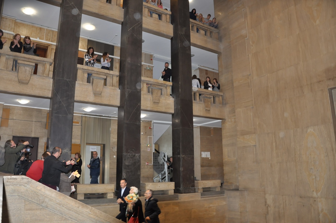 Райна Кабаиванска бе посрещната в сградата на Общината от десетки нейни служители, които я аплодираха.
