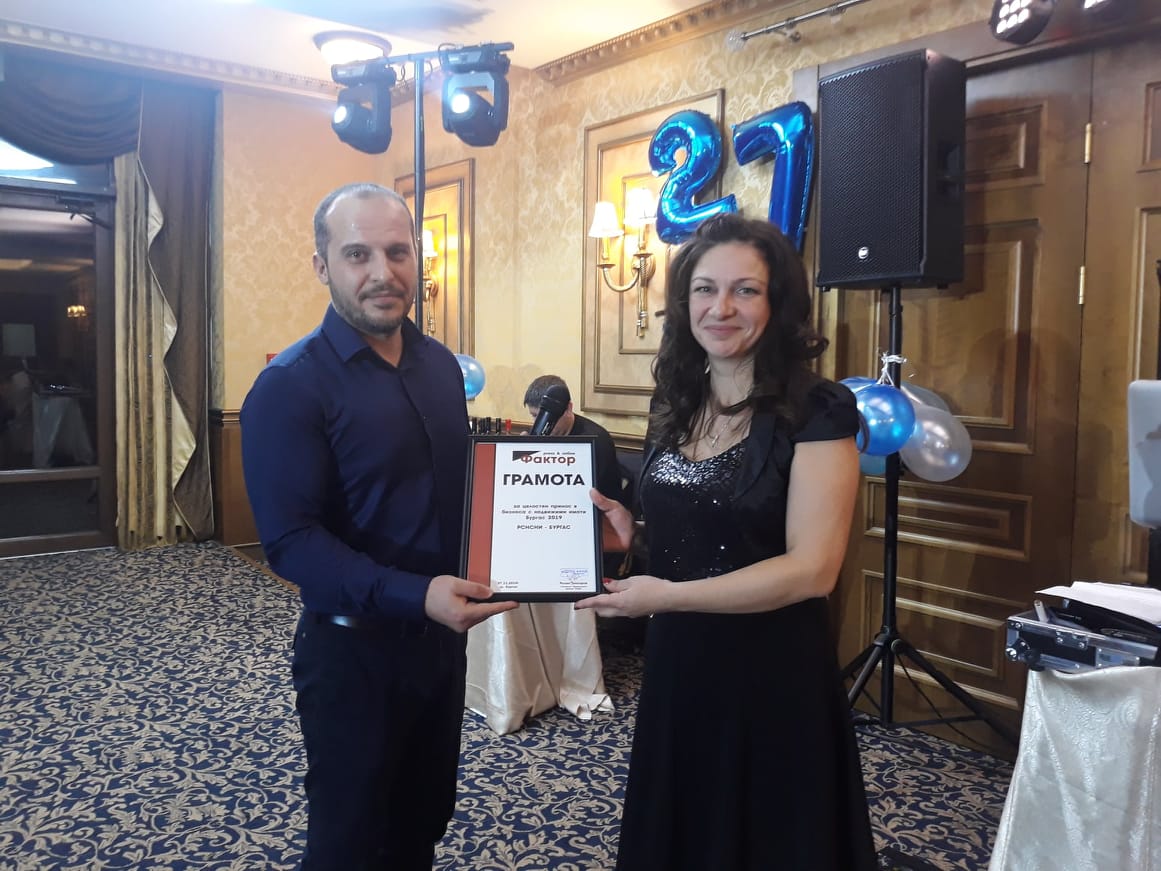 Приветствие към своите колеги отправи и Десислава Зехирева - председател на УС на Бургаската структура. След което тя връчи благодарствена грамота за представителите на „Кантора 056“, „Инфомакс“ и „Рентбилдинг“ и специална грамота на Кремена Желева от „ДСК Дом” за принос и сътрудничество за развитие и подпомагане дейността на НСНИ през 2019 година.