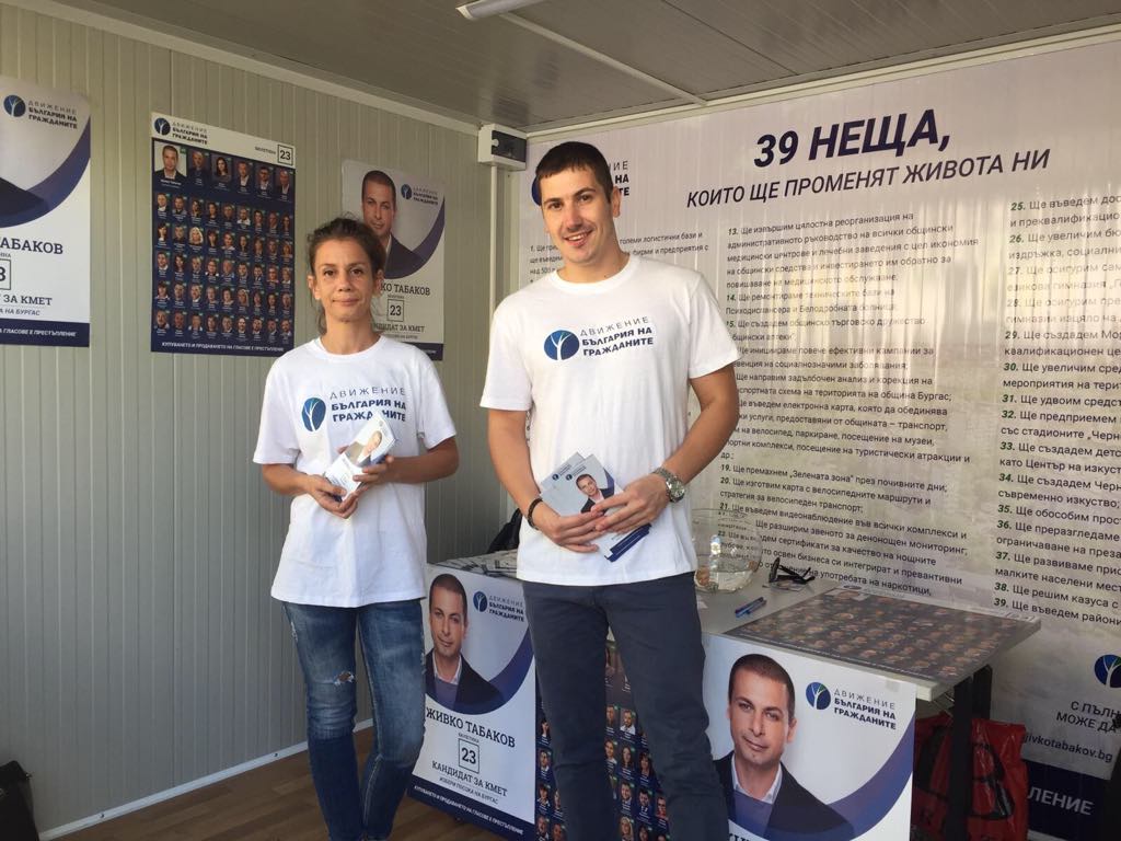 „Това е много специален ден за нас. Увереността ни идва от това, че нашата листа е една от последните надежди на бургазлии, за да могат те да имат по-висок стандарт на живот и да се чувстват равни. Първи се представих като кандидат за кмет, първи представихме предизборната си програма и първи излязохме на улицата. Първи сме, защото се чувстваме уверени, че зад всяко едно наше предложение стои експертността на нашата листа”, каза Живко Табаков.