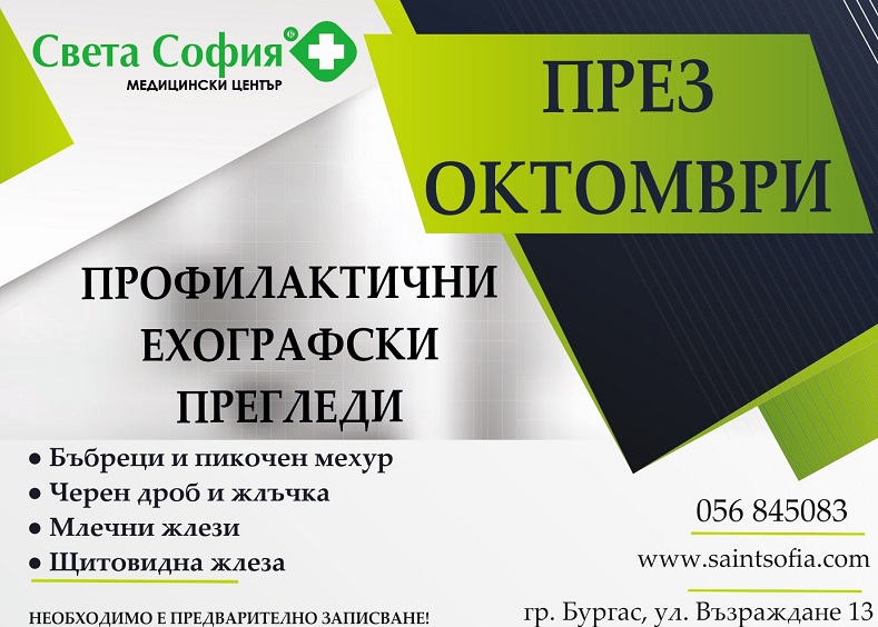 От този месец в университетска болница „Дева Мария“ започват да се извършват високотехнологични изследвания за съдови проблеми. Болницата, която е първенецът в съдовата хирургия в Югоизточна Българи, е единствената в страната, закупила  иновативната система PeriFlux 6000, която дава възможност само в едно изследване да се документират всички стойности на пациента, от които се нуждае съдовият хирург за най-точна диагноза. Изследванията започват от  27 октомври и ще се извършват по график, а промоционалната им цена е едва 60 лв. Часове се записват на тел. 056 89 62 62.