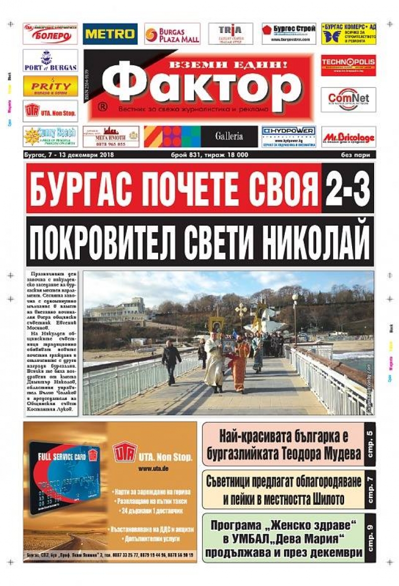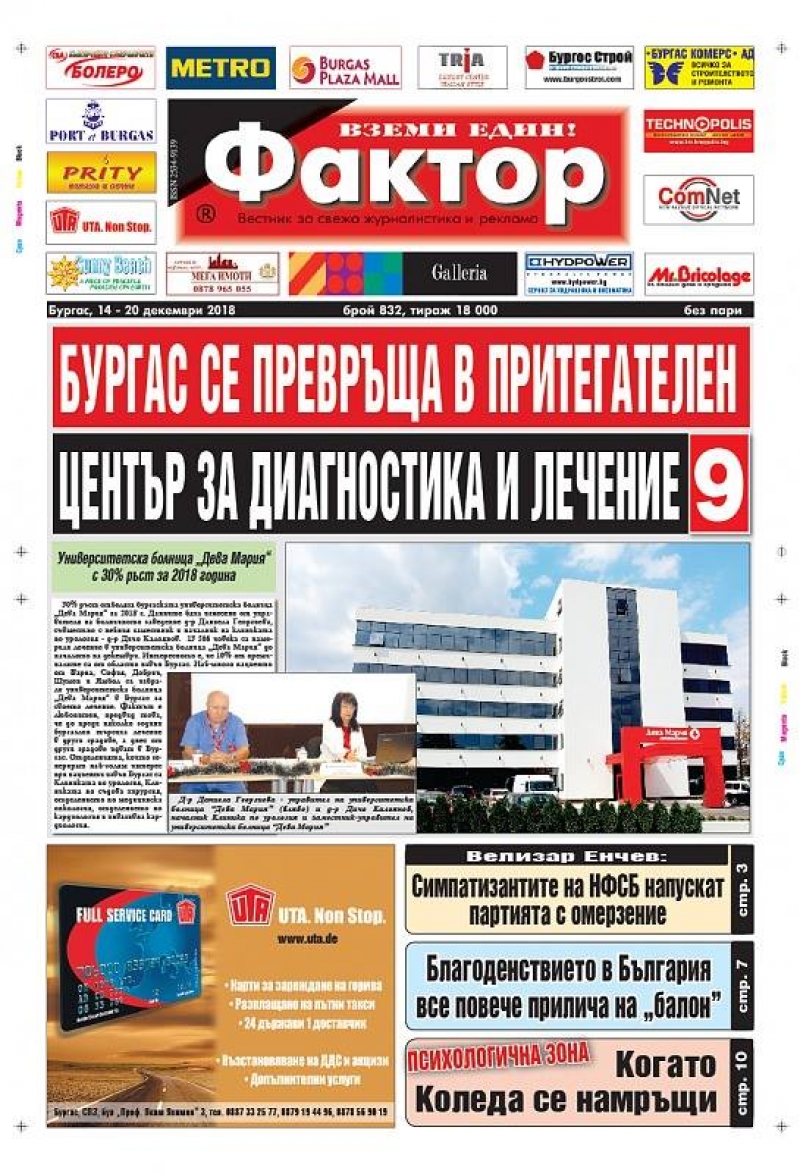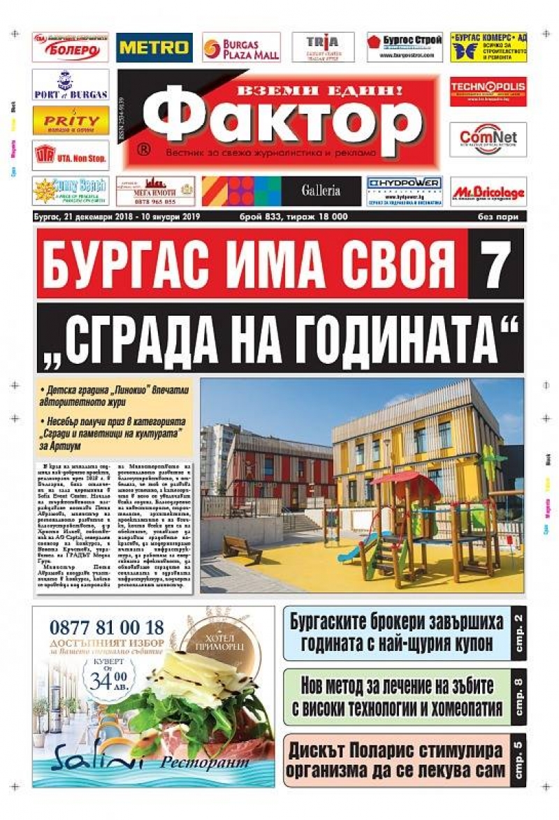В днешния брой четете: Чужди инвестиции в страната се сринаха с над половин милион евро Димитър Стойнев, БСП: Статистически ГЕРБ имаха предимство, но хората вече искат промяна Тракийци водят дела срещу общинския съветник Тодор Ангелов Общинските съветници от ГЕРБ поздравиха пенсионерските клубове по случай Бабинден *** Фактор Имоти: Бургас ще инвестира в индустриалните...